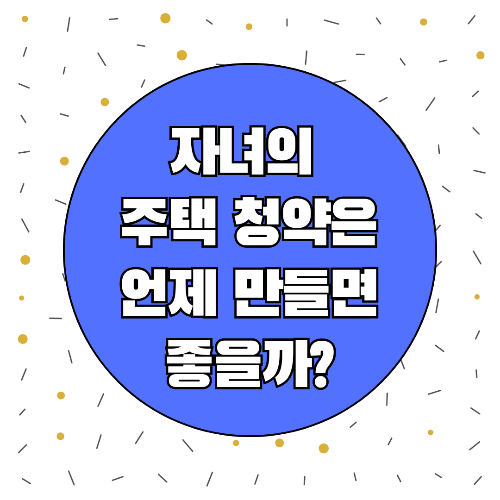 자녀가 계신 부모님들은 아이들의 주택 청약에 대해 한번쯤 언제 만들어야 하나 고민을 해보셨을거예요.